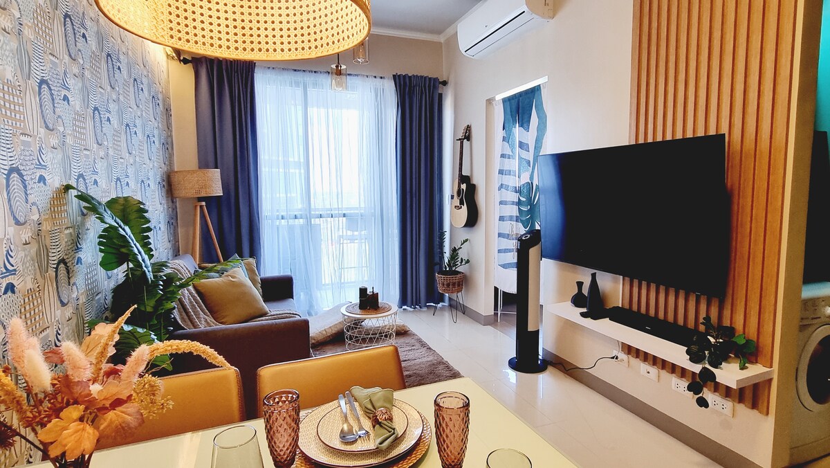 - Novouređena, čista, udobna i luksuzna stambena jedinica u srcu IT parka - Može primiti do 4 gosta - Uživajte u brzoj internet konekciji od 500 Mbps - 50" 4K Smart TV s Netflixom, Disney+, Amazon Video, Youtube i još mnogo toga - Potpuno opremljena kuhinja i potpuno automatsko pranje veša Machiine - Opustite se u tri bazena - Pješačka udaljenost do trgovačkog centra Ayala i Sugbo Mercada - Uživajte u raznim lokalnim i međunarodnim restoranima, kafićima, barovima i praktičnim prodavnicama, a sve je udaljeno samo nekoliko koraka od vašeg praga