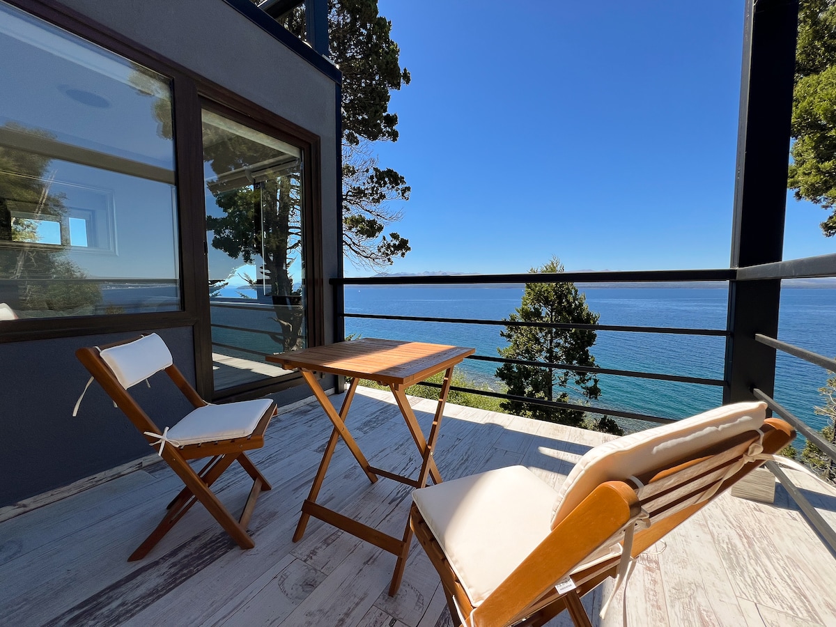 Otkrijte najbolji pogled na jezero u Patagoniji u našem potpuno novom Airbnb smještaju u Barilocheu. Smještena u mirnoj šumi čempresa, naša udobna jedinica za dvoje nudi neusporediv pogled na Cerro Catedral i jezero Gutierrez. Uživajte u miru daleko od centra grada, ali uz jednostavan pristup aerodromu, centru grada i najvećem skijalištu u Latinskoj Americi. Doživite suštinu Patagonije u našem nezavisnom utočištu, gdje ljepota prirode zauzima središnju pozornicu. 🖥️ Besplatan streaming! ❄️ Klima uređaj 📩Imamo još jedinica! Samo nam pošaljite SMS