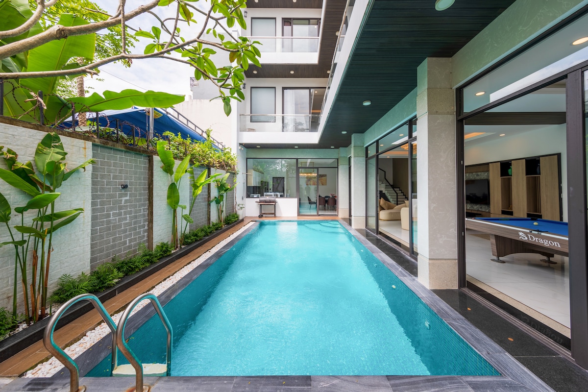 Ultimativno utočište u zadivljujućoj vili, zajedno s raskošnim bazenom i tri privatne spavaće sobe. Smještena u ulici Nguyen Dinh Hoan villa, odlična lokacija nudi jednostavan pristup rijeci Han, mostovima i plaži. Zakoračite unutra i doživite čistu udobnost i eleganciju. Ima novi i luksuzan namještaj, kompletan klima uređaj u spavaćim sobama, dnevnoj sobi, trpezariji i kuhinji. Vani se prepustite fantastičnom prostoru za roštilj, savršenom za velike zabave. Nudimo mini bar s mnoštvom bezalkoholnih pićai praktične opcije doručka