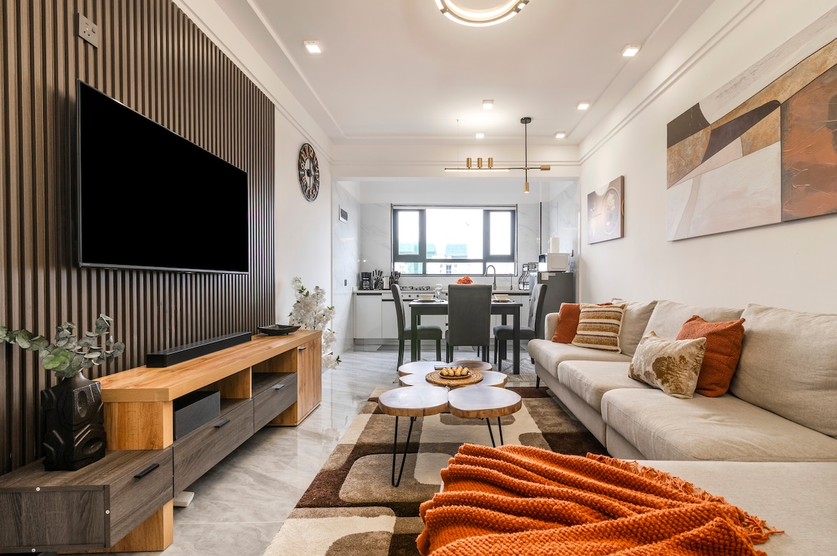 Doživite Nairobi sa stilom iz ovog zadivljujućeg 2BR stana u Kilimaniju. Uživajte u modernoj eleganciji s potpuno opremljenom kuhinjom, prostranim dnevnim boravkom, brzim Wi-Fi mrežom, mašinom za pranje veša, pogledom na balkon, teretanom, terenom za golf i saunom. Zgrada nudi sigurnost 0-24, besplatan parking, pristup liftu i mini-mart u sklopu objekta i restoran radi praktičnosti. Savršeno se nalazi u blizini vrhunskih restorana, kafića, trgovačkih centara, Arboretuma i Nacionalnog parka Nairobi. Rezervišite sada za luksuzan boravak u srcu grada!