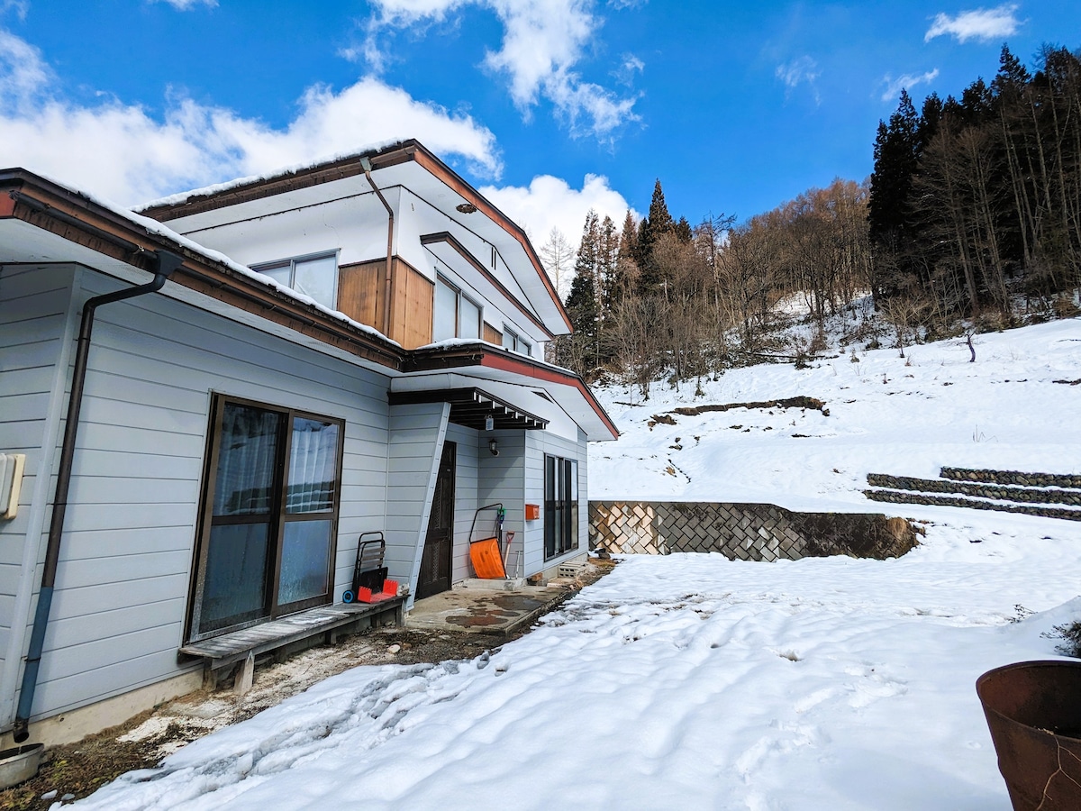 Ovo je privatna gostionica za iznajmljivanje koja je udaljena 30 minuta automobilom do Hakube i pogodna je za razgledanje planinskih puteva Kamikochi i Tateyama Kurobe. Prostrani 4LDK, savršen za porodice i opuštene grupe odraslih. Također možete uživati u roštilju u vrtu, a mi vam obećavamo miran i privatan boravak. ◻︎ Ovo je otvoreno, privatno prenoćište na veličanstvenom mjestu okruženom poljima. Toplina drveća je ugodna, a prekrasan krajolik četiri godišnja doba je izvan prozora i razotkrit će vam srce. Kuća je izgrađena na brdu, s gradskim i seoskim krajolikom ispod, sa zadivljujućim pogledom na sjeverne Alpe. Provedite izvanredno vrijeme gledajući veličanstveni krajolik koji vam mijenja lice ujutro, danju i noću. Ovo nije samo mjesto za „boravak”. Otvoreni prostor koji će vas natjerati da zaboravite na svakodnevni život, luksuzno vrijeme za dubok dah u mirnoj prirodi - poseban boravak koji osvježava vaš um i tijelo. Opustite se kao u vlastitoj vili i uživajte u trenutku istinskog osvježenja. * Izbjegavajte upotrebu glasne muzike ili organizovanja glasnih zabava. ◻︎