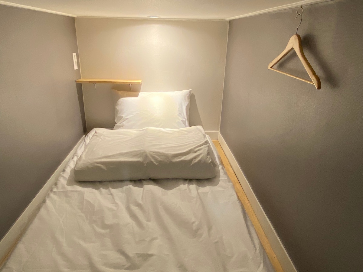 - Krevet za jednu osobu - Privatno kupatilo (WC i tuš) u sobi - Radni prostor (radni sto i stolica) - Vješalica za krpe i mali ormarići - Besplatan doručak - Klima uređaj i podno grijanje, besplatan Wi-Fi - Besplatna posteljina/peškir, fen za kosu, šampon, upotreba sapuna za tijelo - Dostupna je zajednička dnevna soba, kuhinja i usluga pranja veša - Nema parkinga za automobile (moguće je parkiranje bicikla, motora). Koristite javni parking u blizini (naplaćuje se 15000 KRW dnevno) * Korejski gost: Ovo je poseban smještaj za strane turističke gradove i zajedničke smještaje. Ovaj domaćin je registrovan kao poseban slučaj za WeHome Shared Accommodation, a domaće i strane rezervacije su legalne. (Poseban broj: wehome_me_137743)