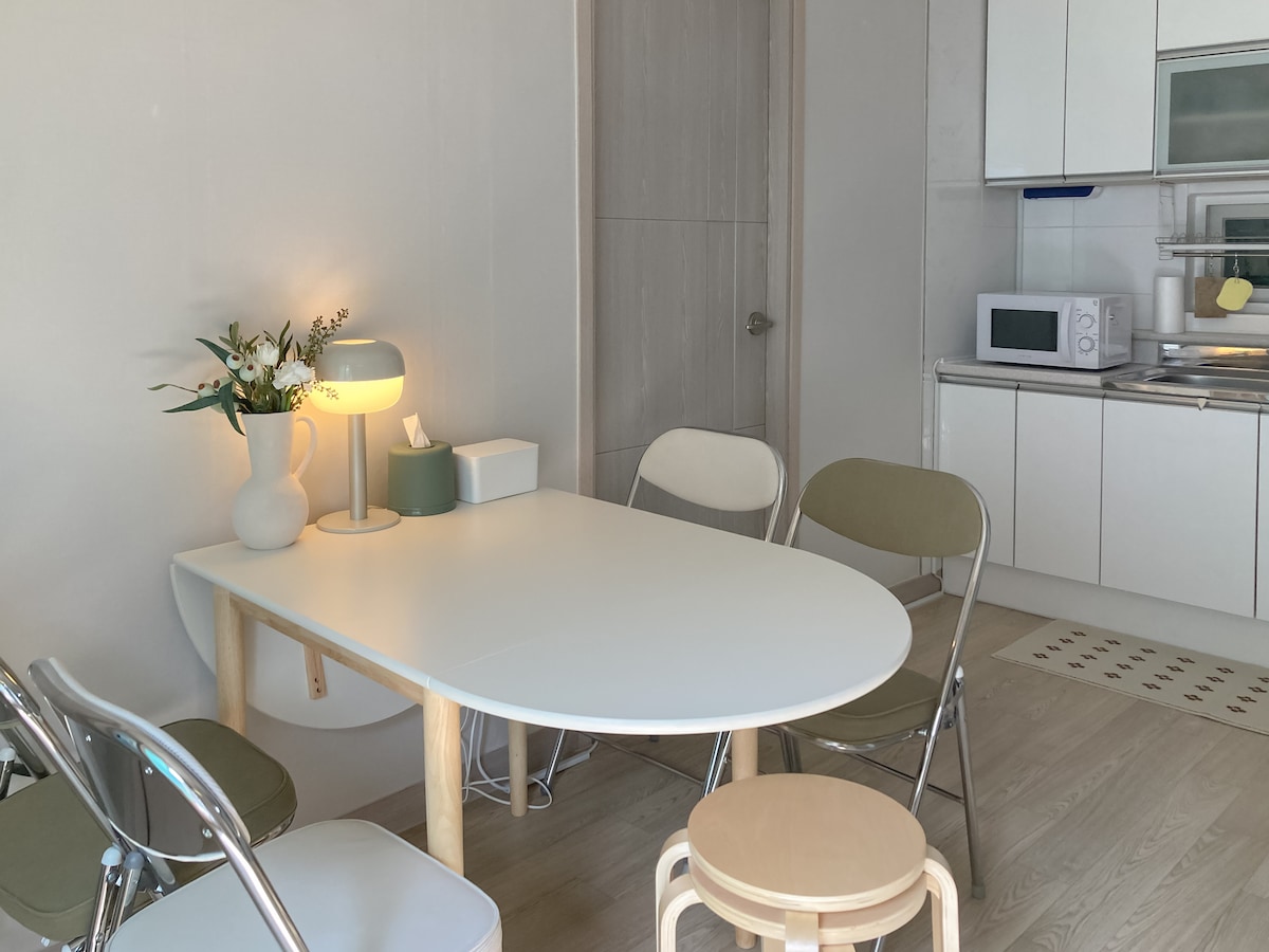 🎈“게스트들이 ‘깨끗하고 아늑했다’고 칭찬한 숙소💫 청소비 포함, 따뜻한 감성으로 맞이해요☕” 🌿 여유로운 쉼, 그리고 감성 가득한 공간 조용하고 따뜻한 쉼이 있는 공간. 동대구역에서 도보 10분 거리, 빈티지한 무드와 식물 인테리어가 어우러진 21평 아늑한 숙소입니다. 🏡 숙소는 3층에 위치/ 엘리베이터는 없어요. *작은 운동 후 만나는 따뜻한 쉼, 여유롭게 올라와주세요 :) 늦잠 자도 괜찮아요. 체크아웃은 오후 1시^^ 반려동물도 동반 가능하며, 1층에는 GS25 편의점이 있어 언제든 편리하게 머무르실 수 있어요. ✨ 숙소 정보 요약 동대구역 도보 10분 / 버스 정류장 도보 3분 3층 도보 이동 (엘리베이터 없음) 체크아웃 오후 1시 / 캐리어 보관 가능 반려견 1마리 동반 가능 (소형견 기준) 2룸, 넓은 거실 21평 / 퀸사이즈 침대 3 넓은 6인용 테이블 / 1층 GS25 편의점 감성 식물 인테리어 / 빈티지 무드 조명