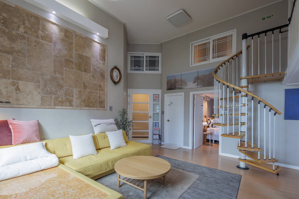 Ovo mjesto s morem svih godišnjih doba, Yeongjongdo Old-eup Villa Više od četiri mjeseca, to je prostor pripremljen sa svom pažnjom od jednog do deset. Opuštajući Yeongjong je također smještaj u kojem možete uživati u pravom odmoru. Nadam se da ćete imati udoban boravak u Guupa Villi. • Prostor Sastoji se od dvije sobe i može primiti do 4 osobe. Ako je dozvoljeno više od 2 osobe (15.000 KRW po osobi), naplatit će se. • Konfiguracija kreveta Osiguravamo 1 bračni krevet i posteljinu za 2 osobe, Obezbjeđujemo nadmadrace i komplete posteljine za dodatne osobe. • Dnevni boravak, potrepštine za spavaću sobu Lg Stanbymi Marshall Bluetooth zvučnik LG sistem klima-uređaja Madrac (treći bračni madrac, nadmadrac) • Kuhinja Indukcioni šporet s 2 rupe Elektronska rerna Ugrađeni frižider Coway pročišćivač ledene vode Nespresso aparat za kafu Komplet posuđa za 4 osobe Šolje, čaše za vino, soju čaše, setovi za čaj Otvarač za vino • Kupatilo Aesop sadržaji Dyson Supersonic Peškir za lice, peškir za tijelo, tanjir • Netflix, TV, Youtube, internet dostupan Inbyeonggram @ gueupvilla_