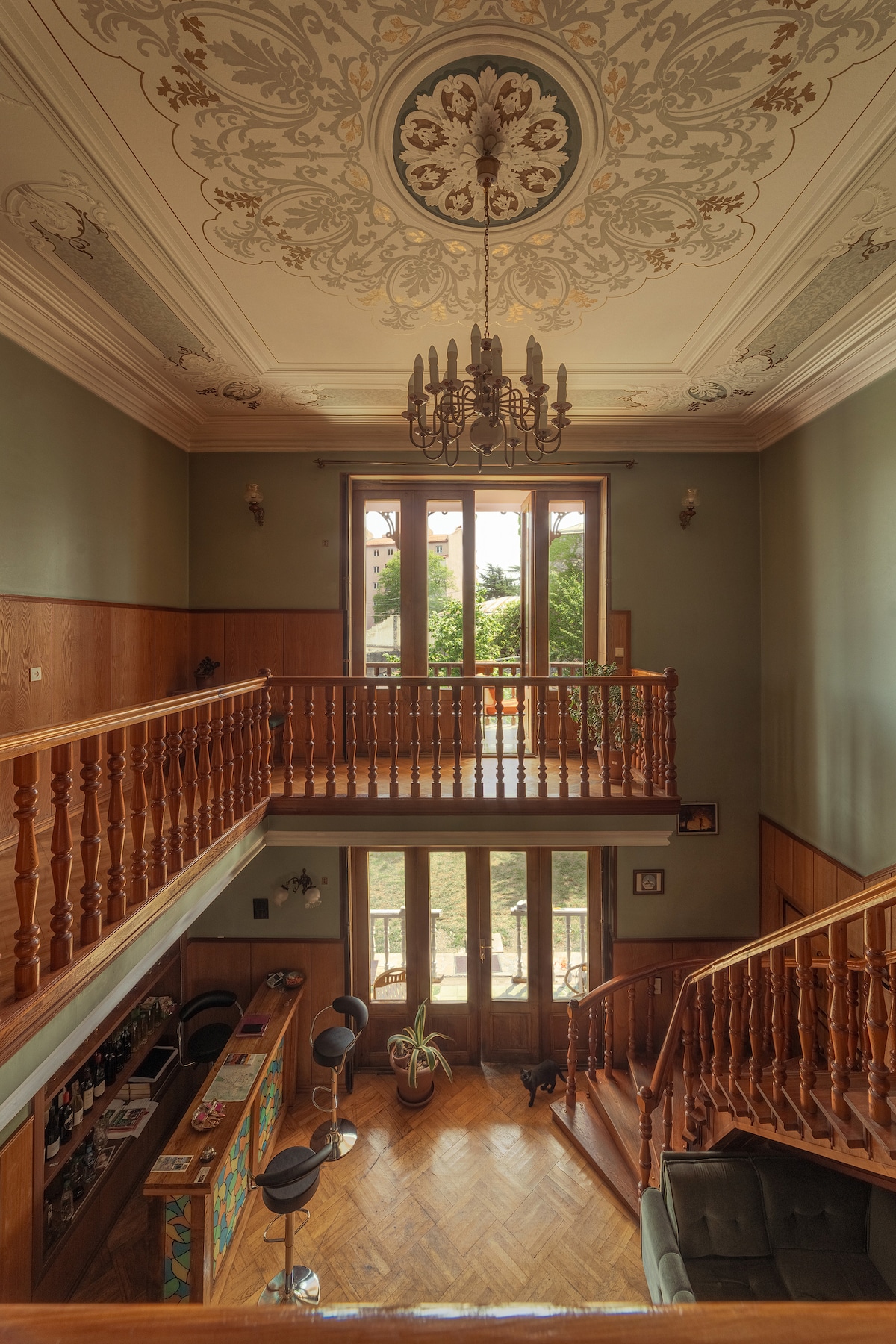 This charming, rustic house in Telavi once belonged to my grandparents and was built in the early 20th century in authentic Georgian style, using large river stones, red bricks, and featuring a spacious wooden balcony. From here, you can enjoy stunning views of Telavi’s streets and breathtaking Caucasian mountains. During our renovation, we made sure to preserve the home’s original style and decor.