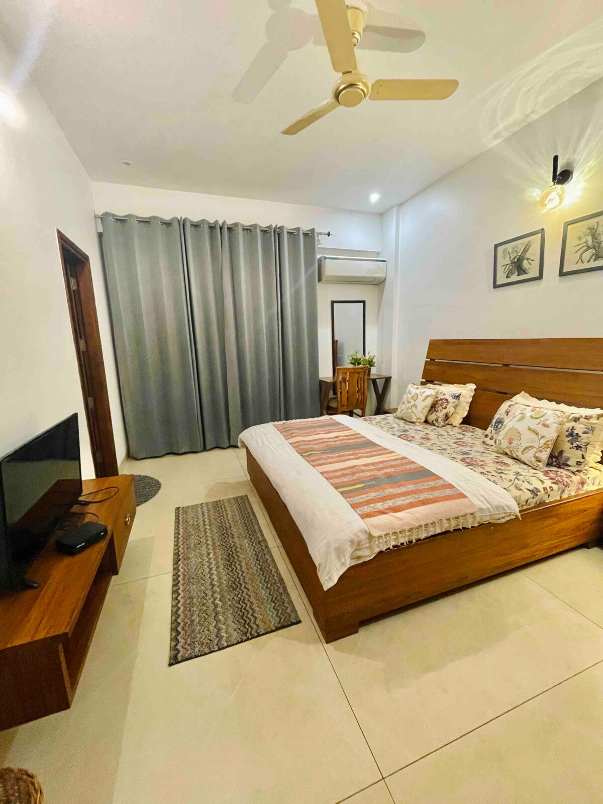 Svijetla i udobna kuća pored stabla manga u mirnom, sigurnom i mirnom kvartu u Sektoru 12, Panchkula. Imat ćete puni privatni pristup našem drugom spratu koji uključuje DVIJE spavaće sobe(s klima-uređajem), DVA kupatila, dnevni boravak(s klima-uređajem), potpuno opremljenu kuhinju i dvije terase (uska prednja i velika). Bolnica Alchemist, bolnica Paras, stadion Tau Devi Lal udaljeni su samo nekoliko minuta vožnje. 2 minute vožnje od ulaza/izlaza na autoputu Shimla-Delhi.