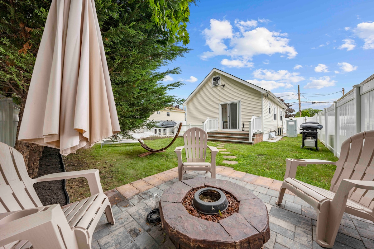 Luksuzni smještaj prikladan za porodice, moderno uređen. Odlično za opuštanje i udobnost. To će vam pružiti osjećaj doma daleko od doma. 30 minuta vožnje vozom do New Yorka. 12 minuta vožnje do aerodroma JFK. 6 minuta vožnje do UBS Arene. Otvoreni tlocrt i kompletna vanjska kuhinja čine kvalitetno provođenje vremena s prijateljima i voljenim osobama bez napora. Uživajte u svim karakteristikama predgrađa, ali i dalje budite dovoljno blizu da učestvujete u gradskim avanturama.