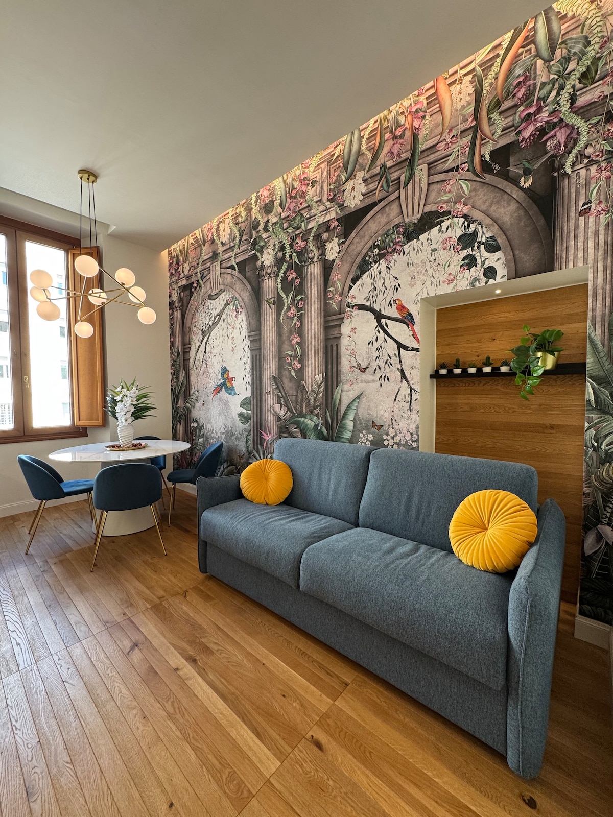 Šareni, nedavno renovirani stan sa živopisnom umjetničkom atmosferom, udaljen samo 2 minute hoda od stanice Termini i 5 minuta od metro stanice Repubblica. Naći ćete sve što vam je potrebno tokom boravka: potpuno opremljenu kuhinju s frižiderom, mikrovalnom pećnicom, mašinom za pranje veša i mašinom za pranje sudova; udobno kupatilo s velikom tuš kabinom; veliku spavaću sobu s velikim bračnim krevetom; kauč na razvlačenje na kojem može boraviti još jedan gost; klima uređaj, TV i gramofon koji radi.