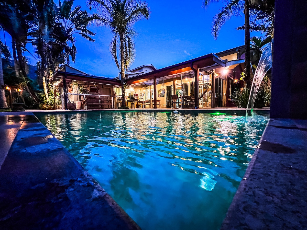 CHALÉS VALE VERDE SP (Utočište Waterfall) Savršeno mjesto za opuštanje. Romantični prostor s kaminom, grijanim SPA CENTROM i prekrasnim pogledom na privatni vodopad! Jeste li ikada razmišljali o buđenju uz zvuk tekuće vode i pjev ptica? Sve to uživa u nadrealnom pogledu na zelene planine i kristalno čistu vodu prekrasnog vodopada u vašem dvorištu! Kompletan doživljaj povezivanja s prirodom usred atlantske šume na vrhu Serra do Mar de Ubatuba.