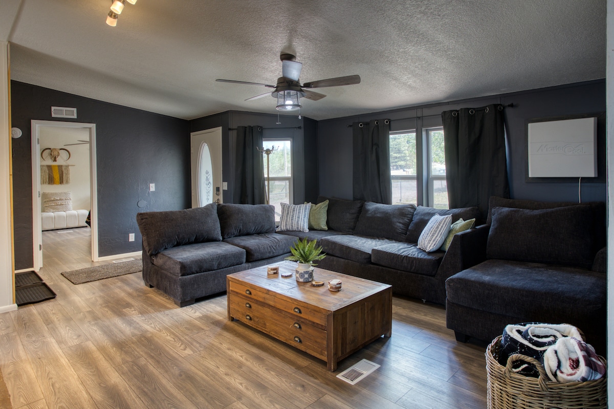 We are 25 mins from the PF National Park ✅ Whether you're visiting or passing through, our updated home will ensure your stay is comfortable. - King suite w/ split floor plan - Tankless water heater - Lvl 2 Tesla Charger (43~mph) - Parking for 3 cars on the driveway & gravel w/ trailer parking - Brand new high end Washer & Dryer - Coffee bar w/ coffee pods, flavorings, teas, & snacks. - Fast wifi - Fully equipped kitchen - Black out curtains in all rooms Enjoy your stay in Northern AZ