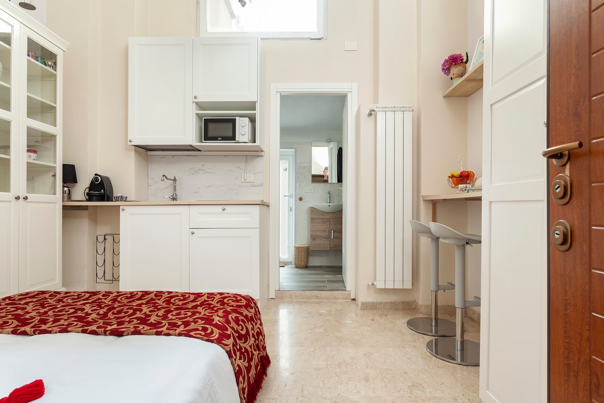 Prođite kroz privatni ulaz i uđite u vrlo udoban prostor, gdje su podovi od blijede drva nadopunjeni popločanim detaljima na zidu. U ovom kompaktnom studiju ima mnogo plusova, uključujući kišni tuš, kablovsku televiziju i aparat za espresso. Corso Sempione je vrlo živo područje, i danju i noću, sa supermarketima, mnogim restoranima, barovima i još mnogo toga. Subotom i utorkom kupujte na uličnoj pijaci Via Fouche. Kongresni centar u Milanu se lako može prošetati.