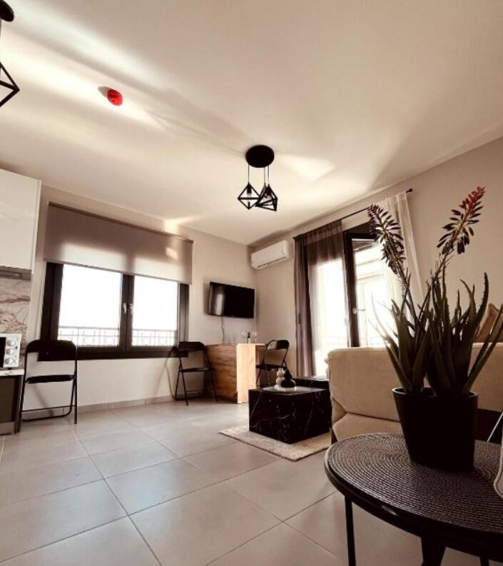 Moderan stan u centru Alexandroupolija potpuno opremljen svim modernim sadržajima za ugodan boravak 2 osobe. Njegova lokacija je idealna za pristup centru i obali uz šetnju. U krugu od 100 metara nalazi se pristup supermarketima apotekama, Benzinskoj stanici, brzoj hrani, pekari itd. Urbana autobuska stanica je udaljena 50 m. Udaljenost do aerodroma je 4 km, od luke na 500 m i od KTEL-a na 300 m.