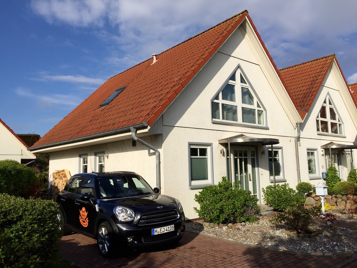 Svijetli, rustikalni, bijeli namješteni dvosobni stan na 2. spratu s pravim drvenim parketom, potpuno opremljenom kuhinjom, kupatilom i spavaćom sobom. U srcu Wenningstedta, u neposrednoj blizini seoskog jezera, mnoge prodavnice (pekare u prizemlju kuće) i odlični restorani. Gosch i plaža su na pješačkoj udaljenosti! (5-10 minuta). S balkona sa stolicom za plažu možete vidjeti svjetionik Kampener. Autobuska stanica je odmah ispred vrata. Prijava je od 16:00.