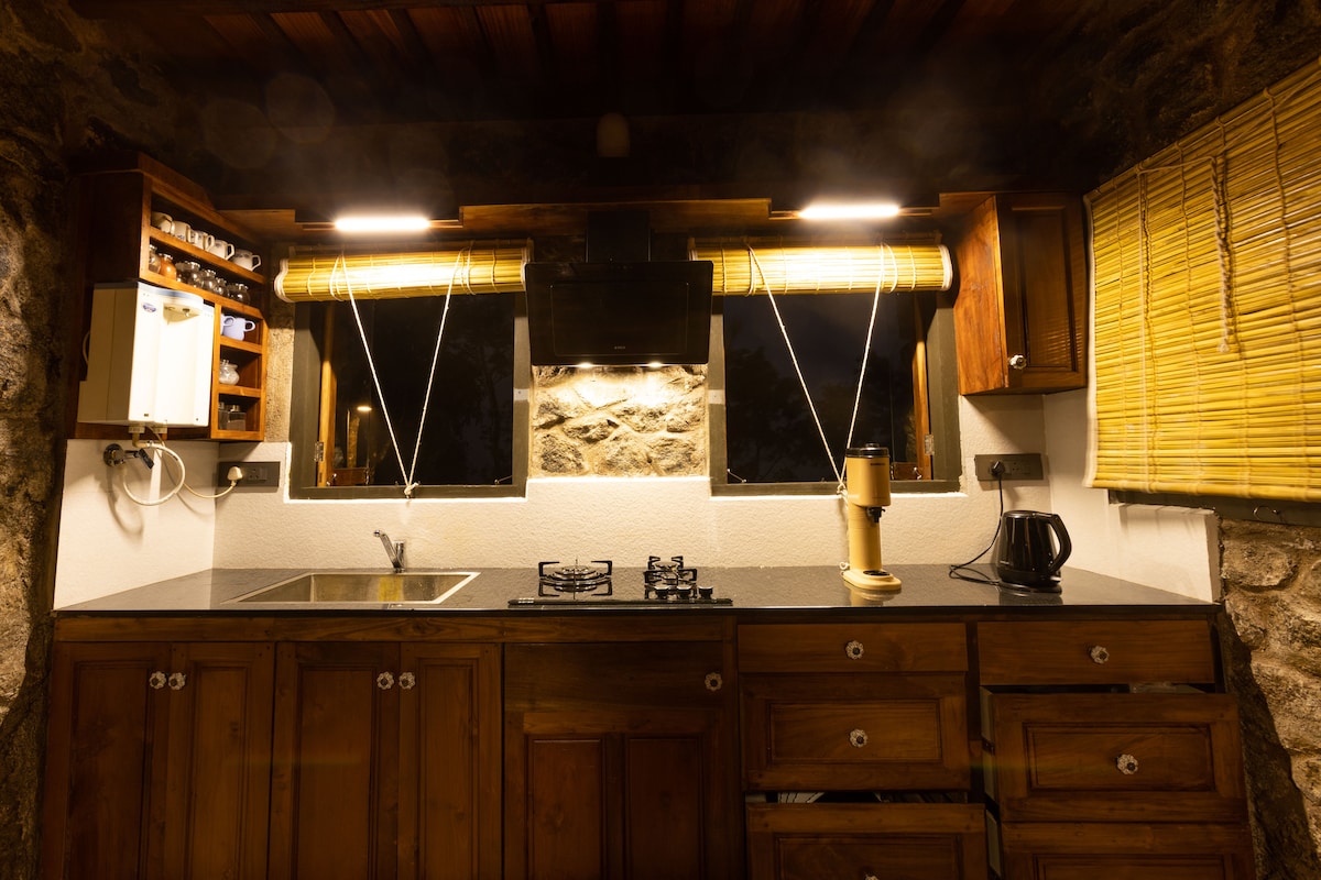 Obnovljena kamena seoska kuća na 1.000 metara nadmorske visine u Vagamonu, Kerala. Ekološko utočište bez priključka na komunalne usluge na pet hektara šume – napajanje solarnom energijom i energijom vjetra, obroci od proizvoda s farme do stola koje priprema chef Anoop, bez televizije i potpuna tišina. Seoska kućica je nekada bila radnička šupa na radnom imanju. Originalni kameni zidovi, udobni interijeri, veranda s pogledom na dolinu. Nije odmaralište. Nema bazena, nema spa centra. Šta vas čeka: pjev kljunorožaca u zoru, logorske vatre pod Mliječnom stazom i osjećaj da ste potpuno izvan civilizacije.
