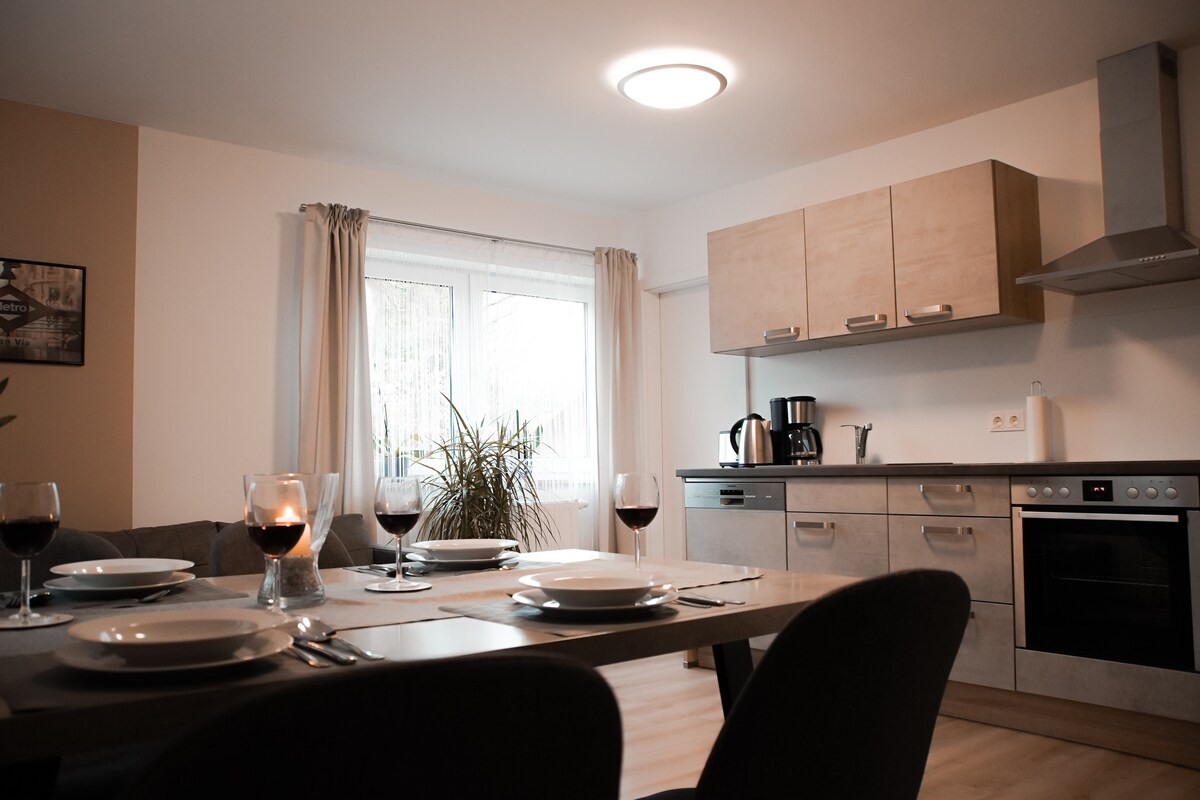 Mirni svijetli stan površine 104 m² nalazi se na periferiji sela u neposrednoj blizini šume. Objekat se nalazi u prizemlju na bivšoj farmi s besplatnim parkingom ispred kuće. Parking mjesto u garaži, kao i punjenje električnih automobila, moguće je na zahtjev. Djeca do 12 godina su besplatna. Kućni ljubimci na zahtjev, zbog povećanih troškova čišćenja po životinji : mali 5 €, veliki 8 do 10 €! Plaća se na licu mjesta!