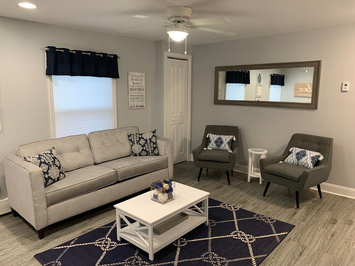 Ova jedinica s 2 kreveta/1 kupatilom nalazi se na savršenoj lokaciji, na samo 5 minuta hoda do plaže i centra Belmara (s pristupom javnom prijevozu u New Jerseyju)! Stan se nalazi na drugom spratu i ima svoj privatni ulaz. Nalazi se u mirnom rezidencijalnom kvartu, a jedan blok dalje nalazi se odlično igralište i Silver Lake s prekrasnom pješačkom stazom. Sva posteljina, peškiri za plažu I PROPUSNICE ZA PLAŽU su obezbijeđeni. U svakoj sobi su klima-uređaji na prozorima i kuhinja.