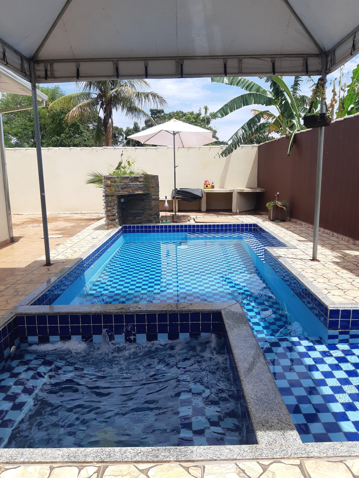Opustite se s cijelom porodicom u ovom udobnom, mirnom i sigurnom smještaju. Proslavite posebne trenutke, poželite dobrodošlicu prijateljima i uživajte u razmišljanju o prostoru koji ste zamislili i isplanirali za svoju porodicu i prijatelje. Kuća se nalazi 20 minuta od aerodroma i centra grada Goiânia, s jednostavnim pristupom Kuća ima: * 2 nezavisna apartmana, s krevetima i kupatilima i klima-uređajem * Vanjsko kupatilo PCD * Grijani bazen s hidromasažom i vodopadom * Roštilj u rerni i peći na drva *U kuhinji je montirana, s frižiderom i šporetom