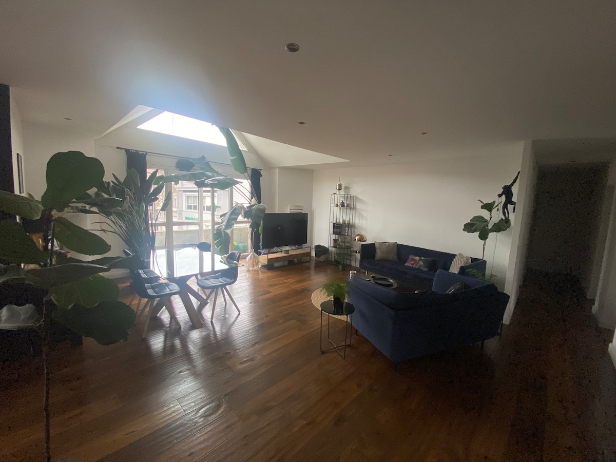 Prelijepo industrijsko potkrovlje. Smješten u našoj kući, potkrovlje je potpuno privatno, dijelite ulazni hodnik i dvorište s nama. Potkrovlje ima 1 kuhinju, 1 ogromnu spavaću sobu s krevetom širine 1m80 cm i mezzaninom s pogledom na sobu za sjedenje. Tu je i udoban kutak za čitanje i prekrasno novo kupatilo s talijanskim tušem. Ukupno 65 kvadratnih metara s klima-uređajem. Pristup masažnoj kadi nije obavezan za 20EUR bademantile.