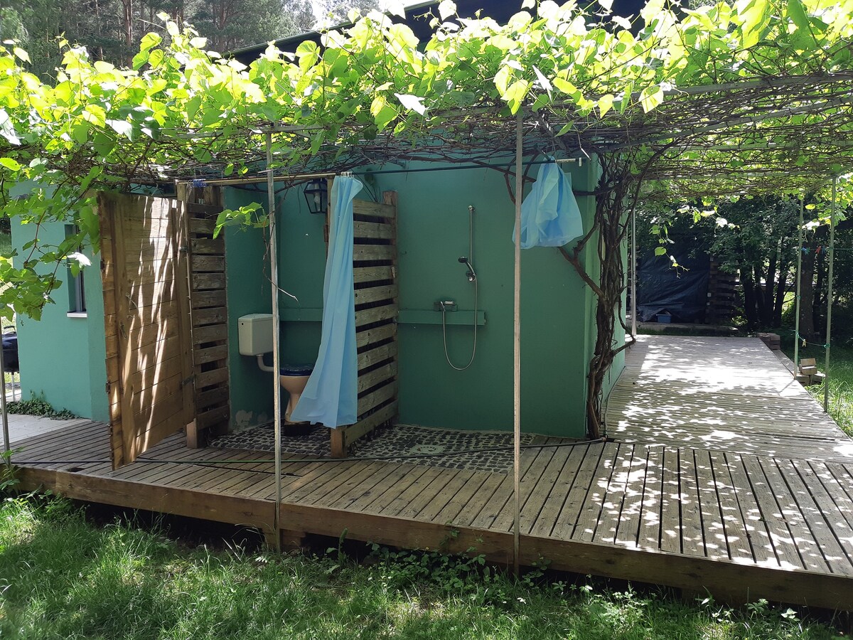 Mali, otvoreni stan/granny flat u prizemlju s opremljenom kuhinjom (aparat za kafu, toster, čajnik, frižider sa zamrzivačem), kupatilom (šampon, gel za tuširanje itd.) s tušem i WC-om, peškirima, posteljinom, sušilom za kosu. Spavaća soba s garderobom, dnevni boravak s kaučem na razvlačenje, stol za blagovanje, TV. Javite nam kada bismo se trebali preseliti u kauč na razvlačenje. Porodice s djecom su dobrodošle, postoji stolica za hranjenje i razne igračke.