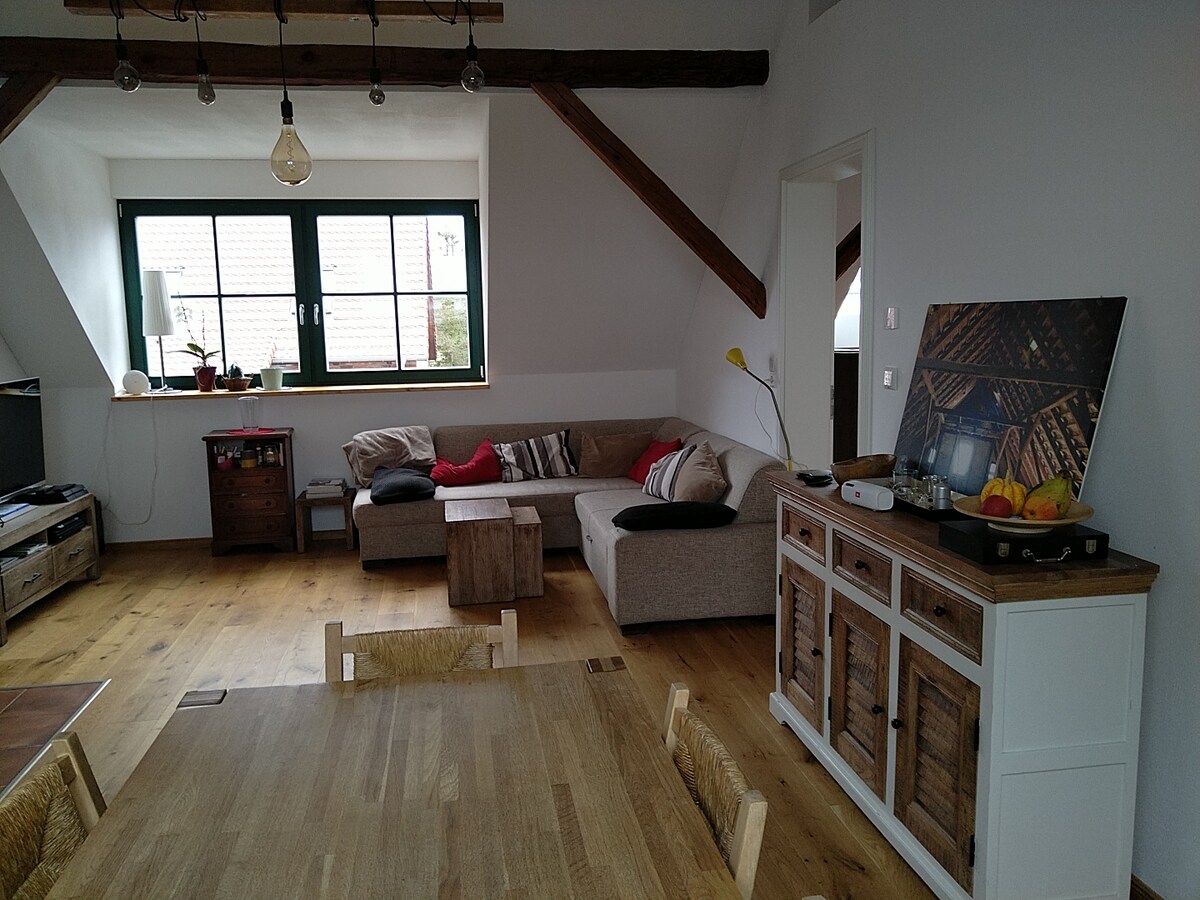 Kuća na selu na dva nivoa sa 65 m2! Potpuno opremljena kuhinja, kupatilo - WC šolja, tuš kabina, mašina za pranje veša, stalak za odjeću; kombinacija dnevnog boravka i spavanja na otvorenom tavanu, terasa s roštiljem, upotreba vrta po dogovoru, parking mjesto za vozilo, skladište za bicikle. Moguća su 2 dodatna kreveta 20 € po noćenju po osobi od 5 godina. Ako je potrebno, možete zatražiti savjete za izlete, dostupna je fascikla s informacijama - u suprotnom ću biti na raspolaganju za moto „Sve je moguće, ništa se ne mora uraditi!”