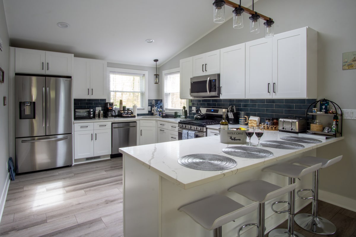 Pobjegnite u New Buffalo i odmorite se u našem nedavno renoviranom domu! Kratka šetnja od 10 minuta odvest će vas do fantastičnih trgovina, restorana i pića. Naš profesionalno dizajnirani 4 kreveta, 2,5 kupatila udobno spava 10 osoba. Smješteno u mirnom okruženju, veliko stražnje dvorište uključuje roštilj, ognjište i vanjsku trpezariju. Manje od 1 milje od plaže i stanice Amtrak, 5 minuta do Union Pier-a, 15 minuta do Michigan Cityja, 40 minuta do South Benda, 75 minuta od Chicaga. Ostanite i uživajte u Harbor Country sa stilom!