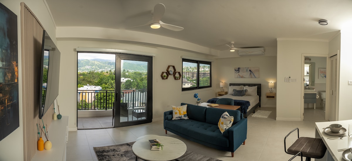 Svijetli, luksuzni stan u centru grada savršena je baza za istraživanje Kingstonove kulturne i živahne tržnice, bogate hranom, muzikom, noćnim životom, plesom i umjetnošću. Nalazi se u centru grada - 5 minuta od Jamajke Pegasus i Emancipation Park. Ovaj luksuzni životni prostor ima sve što vam je potrebno da se osjećate kao kod kuće - ograđeno, 24 sata sigurnosti, besplatni park, teretana, bazen, prostor za zabavu na krovu, Wi-Fi, veš mašina/sušilica, bračni krevet, kupatilo, kancelarijski prostor, praška rm i balkon s pogledom na luku Kingston i obalu.