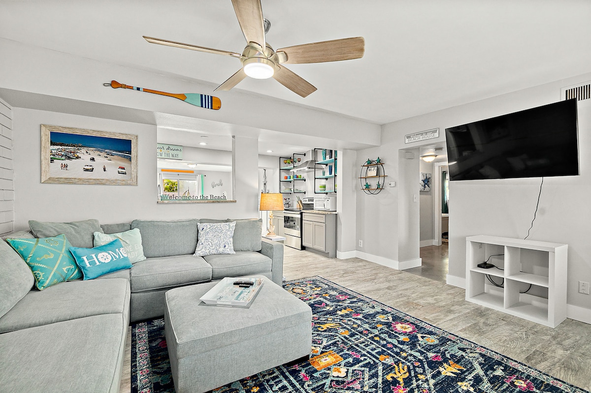 Relax with the whole family at this peaceful, fresh new place to stay. This home is in walking distance from Beach, Publix, local Eateries and Dunkin’ Donuts. You'll have plenty of outdoor space and seating to enjoy the beautiful weather, along with modern furnishings and tasteful decor inside the home. This is a completley newly renovated 2 bed, 1 bath that can sleep atleast 6 people comfortably. We provide smart flatscreen TVs in every room, along with a modern kitchen; Keurig included.