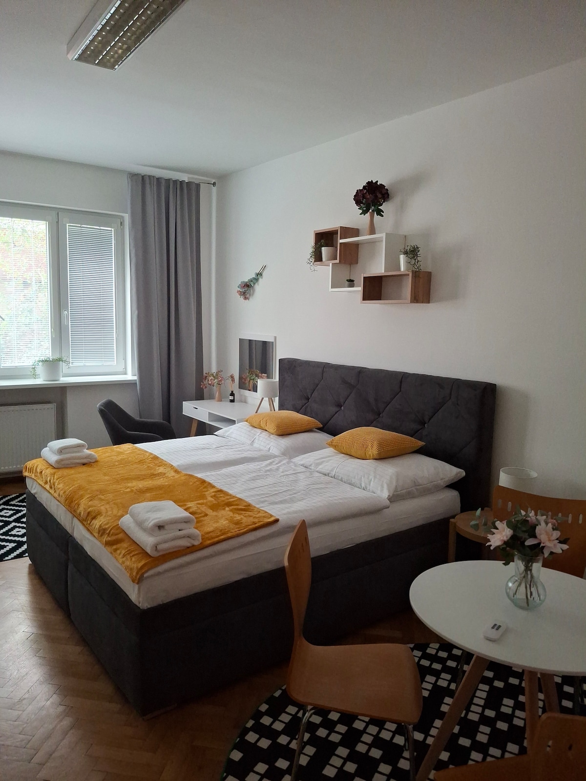 Naš PROSTRANI stan od 95m² udaljen je samo NEKOLIKO KORAKA od Wenceslas Squarea, u samom CENTRU Praga. Područje je puno HISTORIJE, PRODAVNICA i RESTORANA, tako da uvijek postoji nešto za VIDJETI i raditi. Stan je U POTPUNOSTI OPREMLJEN, UDOBAN i savršen za opuštanje i istraživanje grada PJEŠICE. BESPLATAN Netflix je uključen za ugodnu noć u. Nalazi se u HISTORIJSKOJ ZGRADI, tako da nema LIFTA. Iako se nalazi u SAMOM CENTRU, noću je iznenađujuće TIHO, tako da možete dobro spavati.