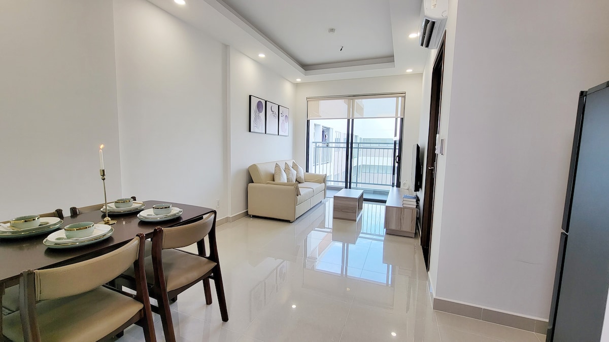 ✨Special promotion for long stays. A modern & stylish condo designed in Wabi x Sabi style with balcony 85m2 at Hung Phuc Happy Residence located at Nguyen Luong Bang commercial road. This is the hub of Hybrid Working Life where Live - Work - Experience integrates harmoniously. - Brand new and modern 2BR, 2-bathroom - Pool & Gym - Fully furnished amenities - eat out in walking distance with many great local restaurants - 1,4 km to SEHC - 1,7 km to crescent mall - 8,3 km to Ben Thanh market