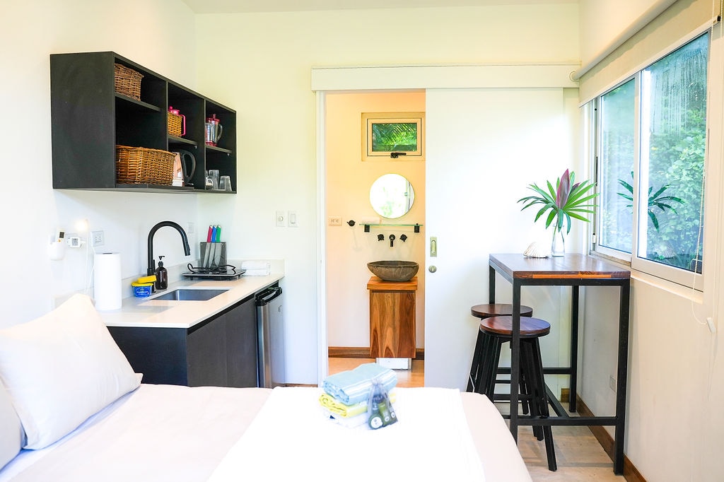 Probudite se uz pogled na horizont Tihog okeana! Ova mala kućica je „ručno izrađena” i nalazi se na samoj plaži Callejones u Guanacasteu. Može primiti do četiri osobe u dvije sobe, opremljene ventilatorima. Postoji dodatno kupatilo s WC školjkom i tušem, koje nudi određenu privatnost, kao i privatno parking mjesto u sklopu objekta. Divan način da se povežete s lokalcima, započnete aktivnosti i, što je najvažnije, odmor.