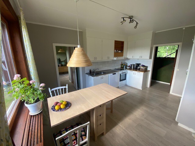 Pogled na more sa šumom odmah iza ugla Cijeli smještaj je vaš; mir, priroda i udobnost Uključeno, i još mnogo toga: – Sauna i kamin (uključena je drva za ogrjev) - Posteljina i peškiri - Mašina za pranje i sušenje veša - Garaža Savršeno za one koji žele pobjeći od svakodnevice, a ipak ostati blizu svega. Samo nekoliko minuta od autoputa Opustite se uz vatru, prošetajte mirno pored mora i uživajte u smirenosti. Srdačno dobrodošli u svoj smještaj za opuštanje, poslovna putovanja ili zasluženi odmor!
