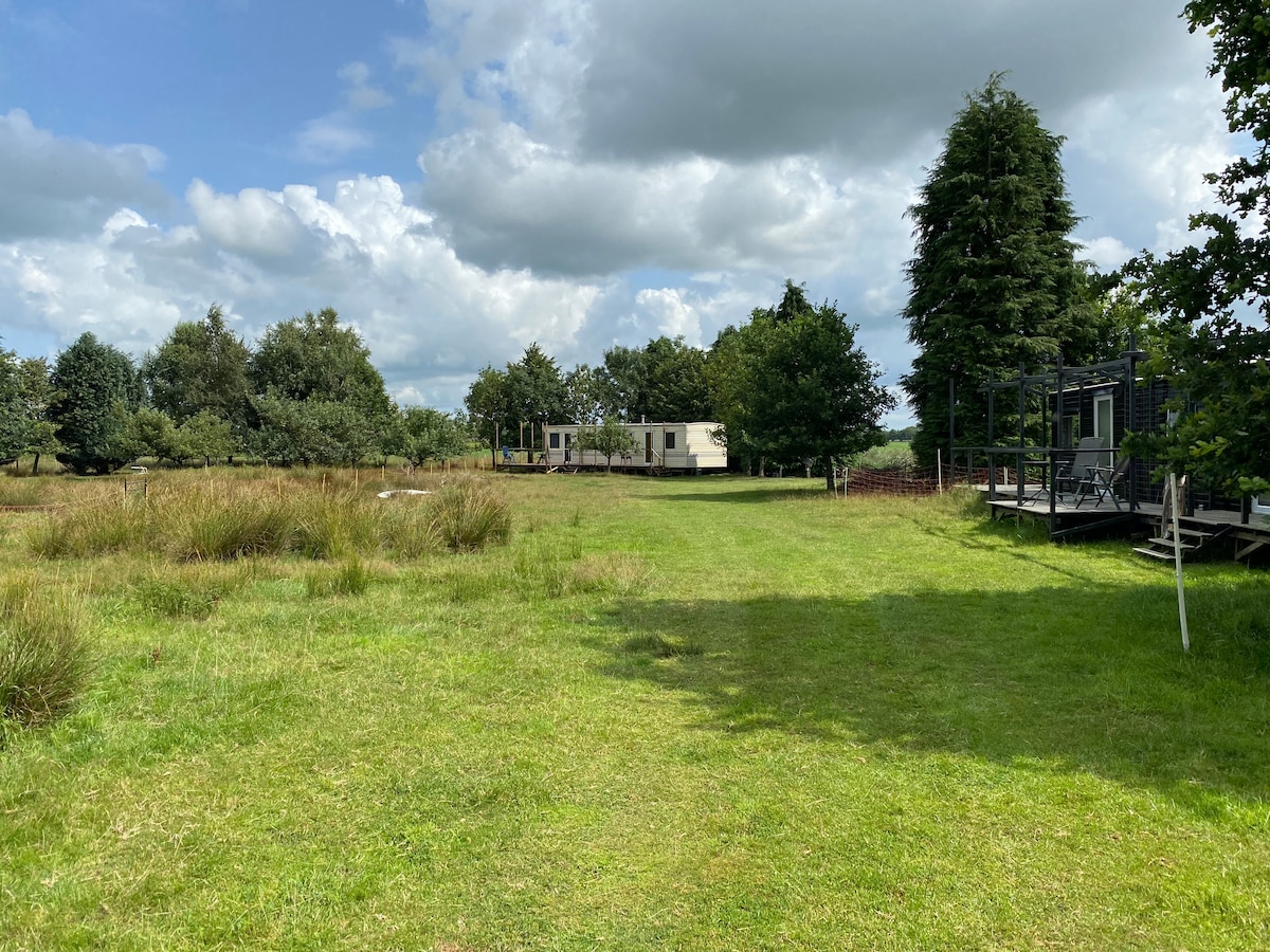 Otvoreno u maju 2024. godine; Mir, prostor, privatnost i sunce na terasi od 14:00 do zalaska sunca. Superbrzi 5G internet, mekani krevet (140x200cm) Kupatilo s ručnim i kišnim tušem, kompletna kuhinja s pločom za kuhanje s 4 ringle, mašinom za pranje sudova, frižiderom sa zamrzivačem i pećnicom. Stol s udobnim stolicama za jelo ili rad. Dvije fotelje za opuštanje i terasa sa stolicama i stolom sa fenomenalnim pogledom na polja sa šumom Midwolder na horizontu.