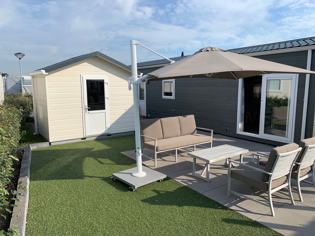 Luksuzna kuća za odmor u Zeelandu za 2 osobe. 2,7 km od plaže. Novogradnja 2022. Uključuje 2 bicikla i posteljinu. Kućica u romantičnom ambijentu, u blizini vjetrenjače, lijepa privatna terasa s francuskim vratima, dnevni boravak. Udobno uređena dnevna soba s TV-om i električnim kaminom. Kuhinja sa ugrađenim aparatima i priborom. Moderno kupatilo s luksuznim tušem, WC-om i umivaonikom. 1 spavaća soba s luksuznim bračnim krevetom. Sve u prizemlju. Maks. 1 pas dobrodošao.
