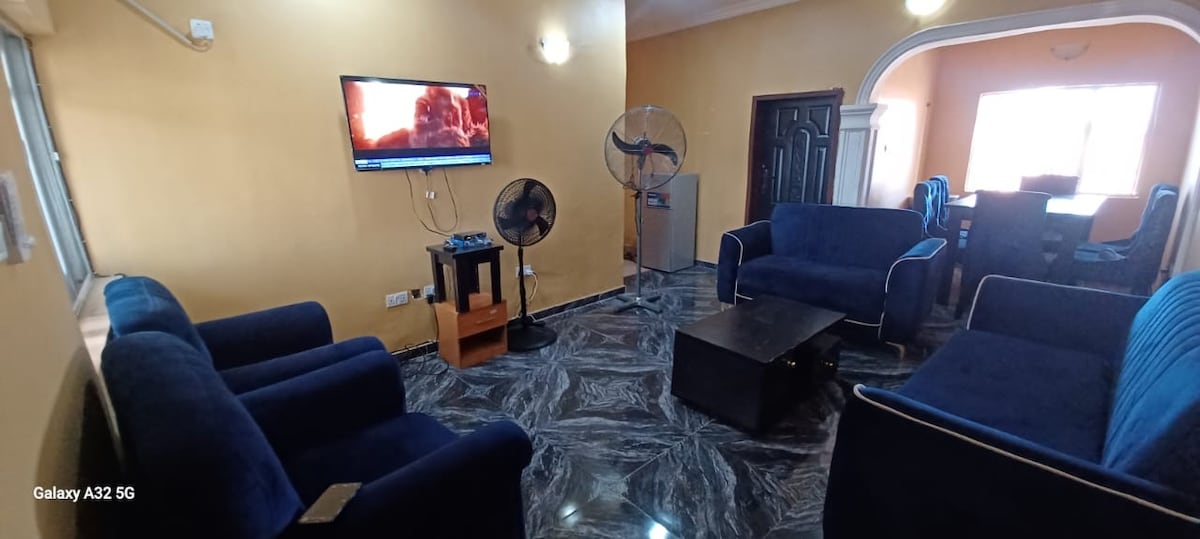 Welcome Tomla Guest House, here in Benin city, your home away from home! This stylish 2025-built 2-bedroom flat unit short-let apartment, is located in the heart of Benin City, Sapele Road, by the Limit Junction (Eriaria Quarters) 15–20 mins to Ring Road, Oba Palace & the Airport. Features: Gated secure compound with electric fence Solar powered Air-con. Wi-Fi En suite bedrooms 2 bathrooms, 3 toilets Dining area Smart TV with DSTV satellite Fully equipped kitchen.
