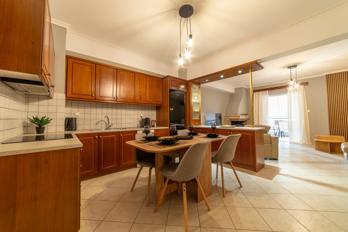 Uživajte u elegantnom iskustvu u ovom centralno lociranom stanu izgrađenom 2021. godine, sa zajedničkim bazenom. Samo 12 minuta od Akropole (4 km) i trga Syntagma (4,5 km). 10-15 minuta do plaže Bolivar (10 km) i luke Pirej (6,7 km). U blizini su tržnice, trgovački centar i restorani. Zelena linija metroa, autobus i taksi udaljeni su nekoliko minuta. Veliki bračni krevet s udobnim madracem i udobnim kaučem na razvlačenje. Potpuno opremljen stan, s velikim balkonom i TV-om od 65’. Rezervišite svoja putovanja sa mnom.