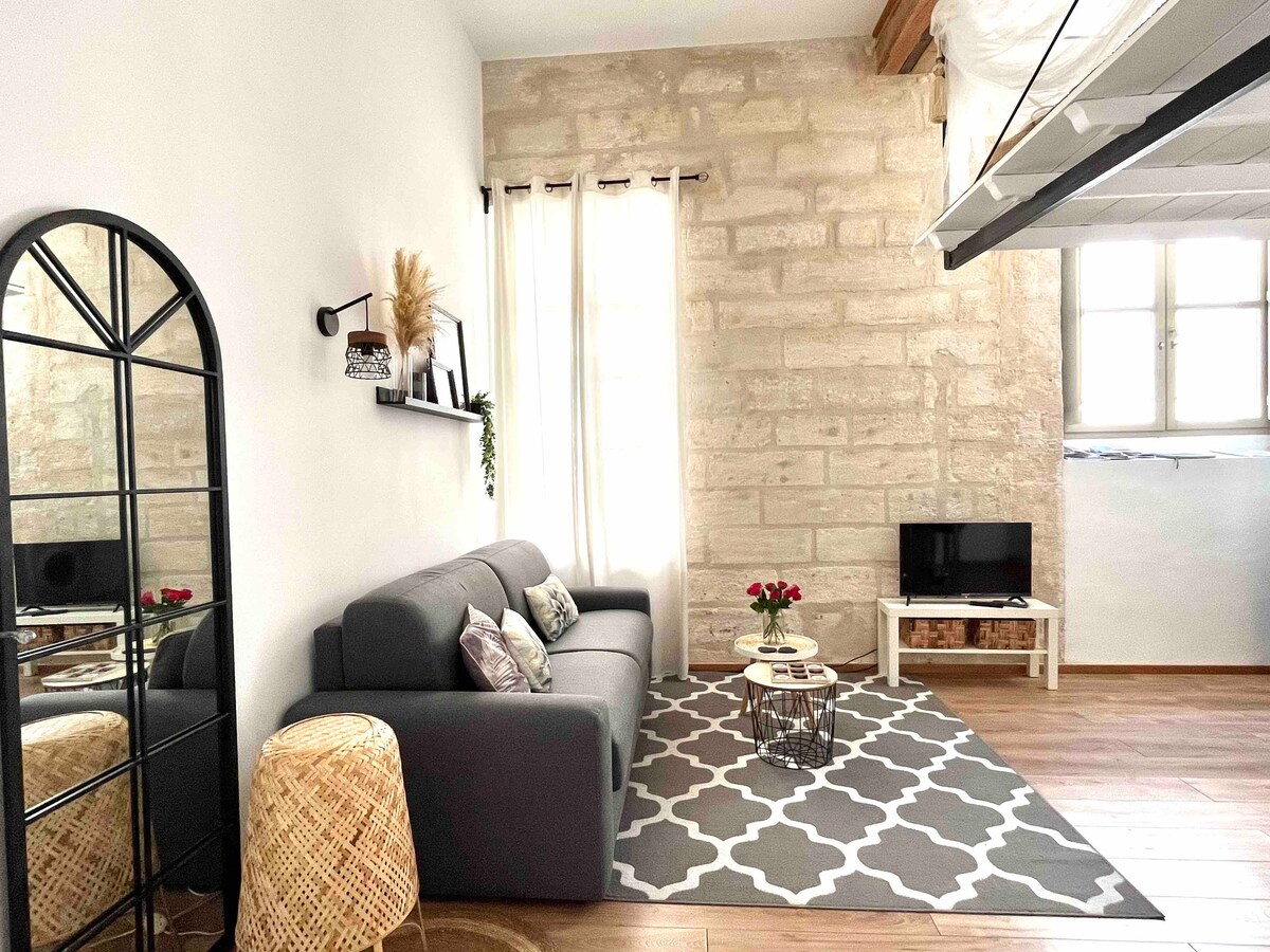U SRCU MALOG RIMA Uživajte u elegantnom i centralnom smještaju, samo nekoliko minuta hoda od centra grada. Idealna lokacija, omogućit će vam da otkrijete svu baštinu Nîmesa: njegove arene, Maison Carrée... Ovaj renovirani T2 se nalazi u mirnoj ulici, u porodičnoj rezidenciji: savršenoj za opuštanje. BESPLATAN PARKING na privatnom i sigurnom parkingu. KLIMA UREĐAJ. Brzi internet s Wi-Fi mrežom. Prodavnice i restorani udaljeni su 5 minuta hoda.