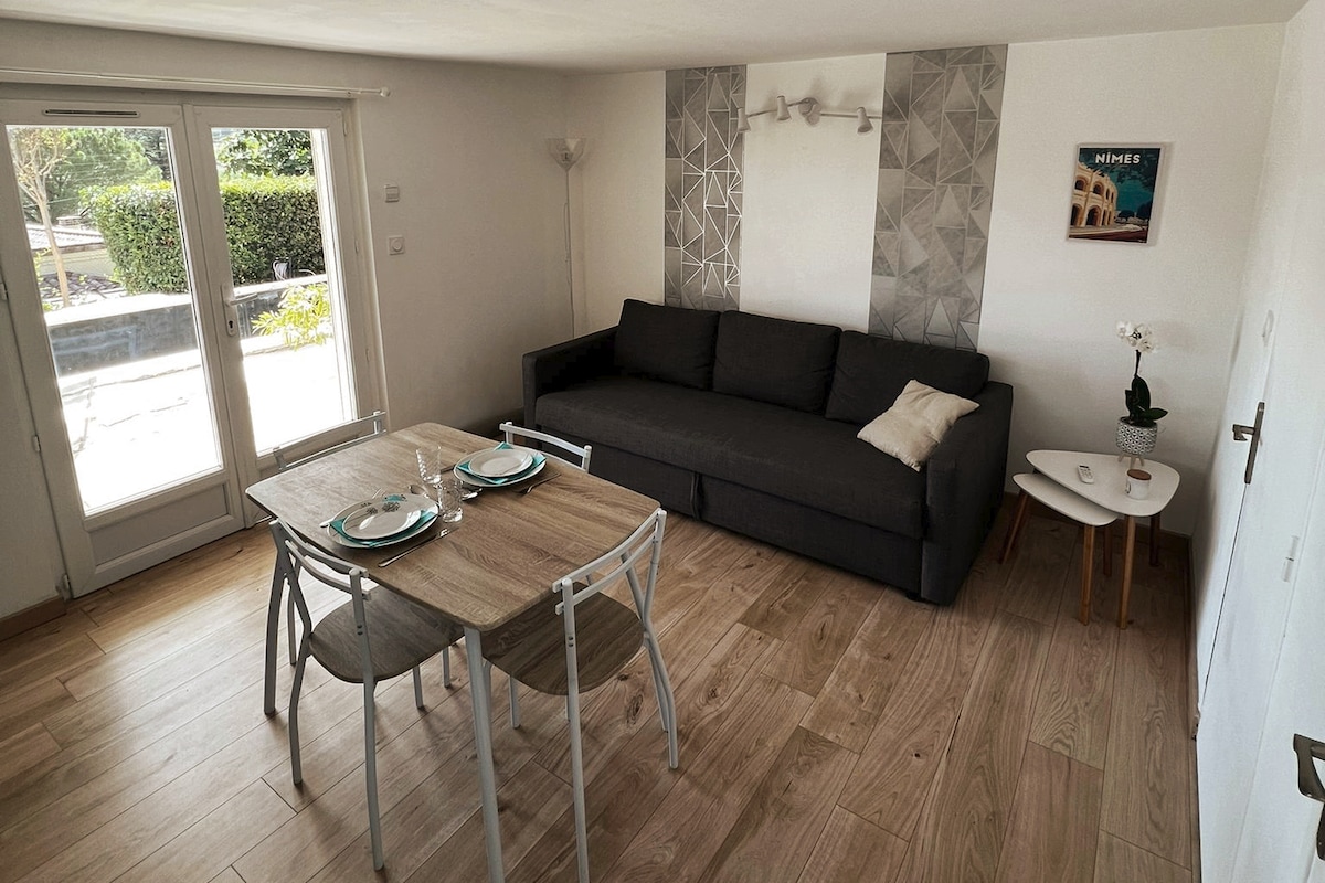 Lijepa čahura renovirana, u prizemlju male privatne zgrade, s besplatnim parkingom i terasom. Na 2 m hoda od tramvaja do centra grada Nîmesa i njegove periferije za 15 minuta! Na 5mn od izlaza NÎMES OUEST kako biste došli do autoputa i posjetili okolinu.