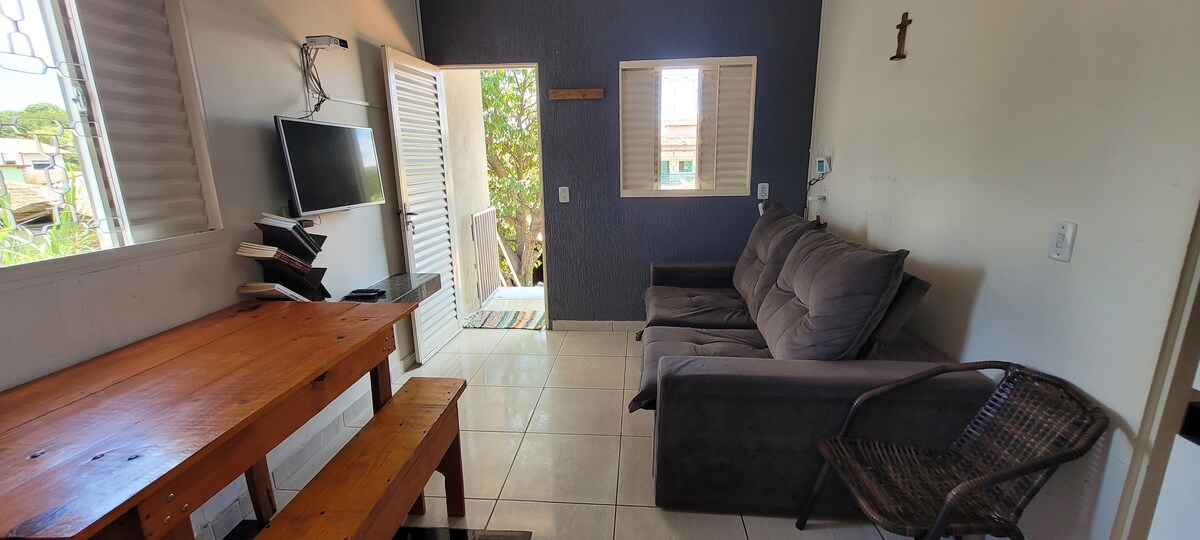Šarmantna kuća u SELU SÃO JORGE. Odlična lokacija, 200 m od centralnog trga i samo 1 km od ulaza u Nacionalni park. Ulica glavnih restorana, gostionica i barova. U blizini nekoliko atrakcija Chapada dos Veadeiros.Sossego guarantee!Sezonska kuća za iznajmljivanje, nema stanara. Bila je to nedavno renovirana, potpuno opremljena kuhinja, apartman, Wi-Fi i Smart TV. Kuća je MALA , idealna za 6 osoba (udobna) i može se proširiti do 8 osoba (dva madraca na podu)