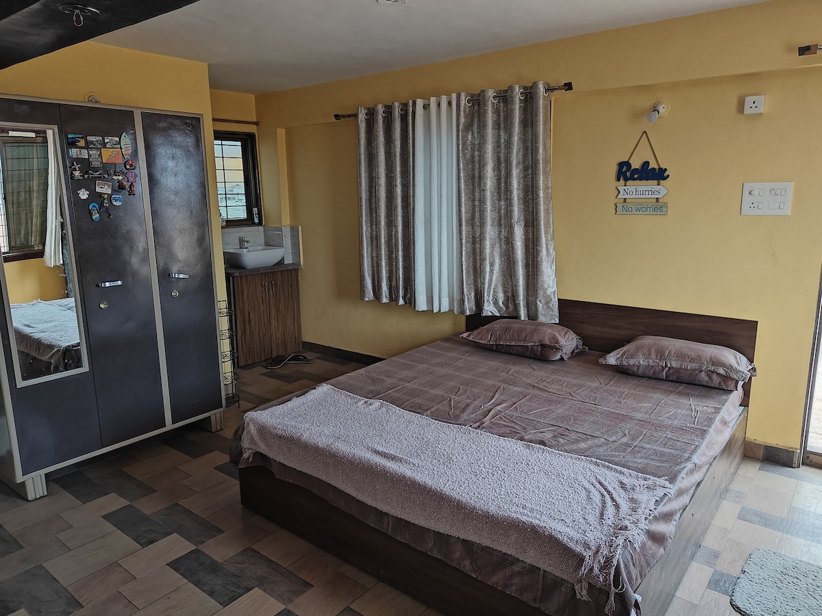 This cozy stay comes with a spacious terrace, perfect for sunset views and sky-gazing with friends. Enjoy your morning coffee or unwind at night in total peace-no disturbances, just calm vibes. Big private terrace Near the airport (super convenient!) Free covered parking on-site WiFi for work or chill (60mbps) Inverter power backup Induction&Kettle Perfect for couples, friends, family. Pet friendly Electric Vehicle charging point This space is your little slice of comfort under the open sky.