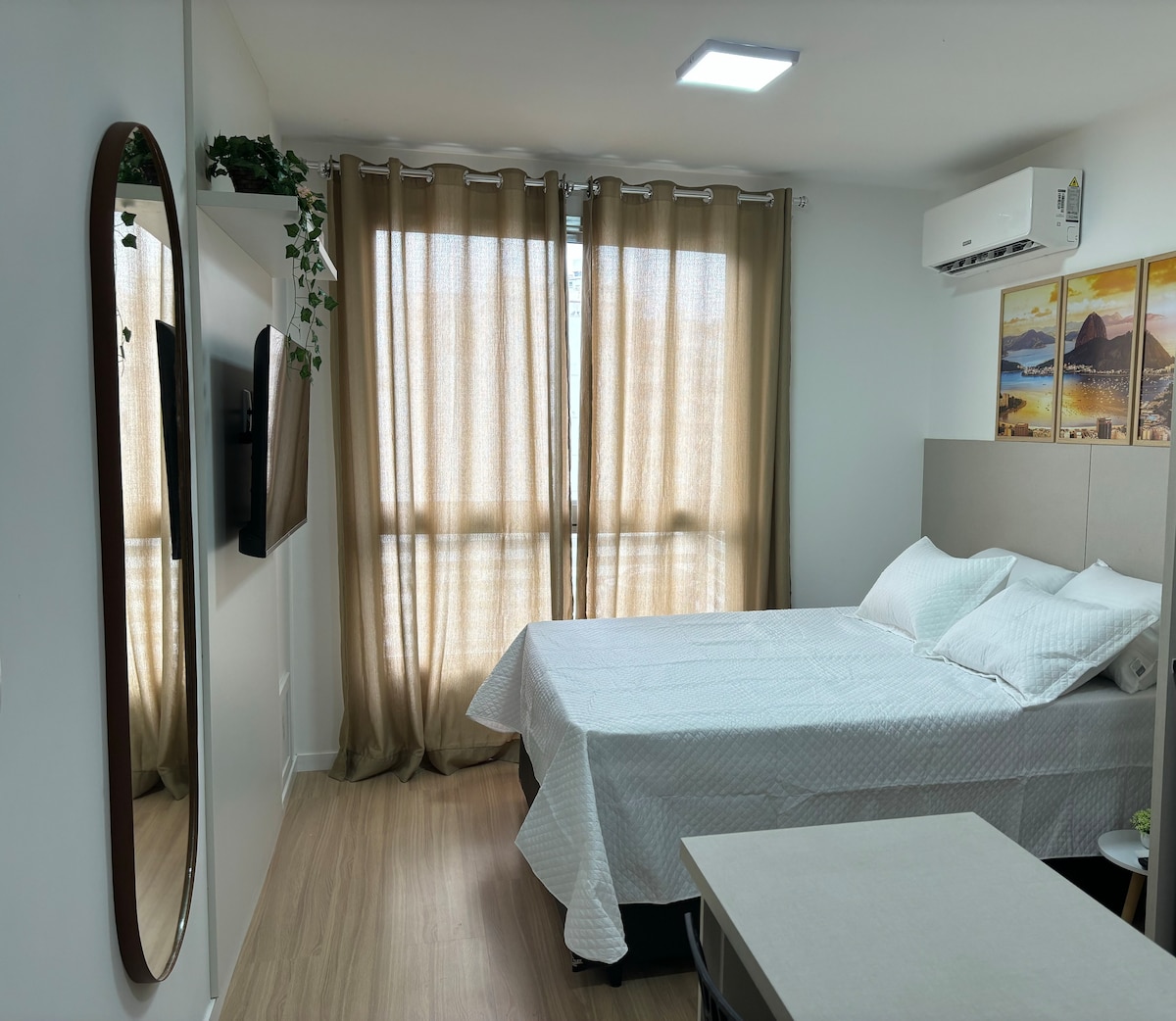 Hej! Mi smo Henrique i Letícia, a ovo je Suíte Tamarindo ili „Tamarind Suite”, naš stan koji se nalazi 50 metara od šetališta Praia de Icaraí i nekoliko metara od svih važnih usluga za vaš boravak, kao što su apoteke, pekare i restorani. Naš apartman je „studio” apartman, pažljivo osmišljen kako bi primio naše prijatelje i goste, a može primiti do 3 osobe, s bračnim krevetom i kaučem na razvlačenje.
