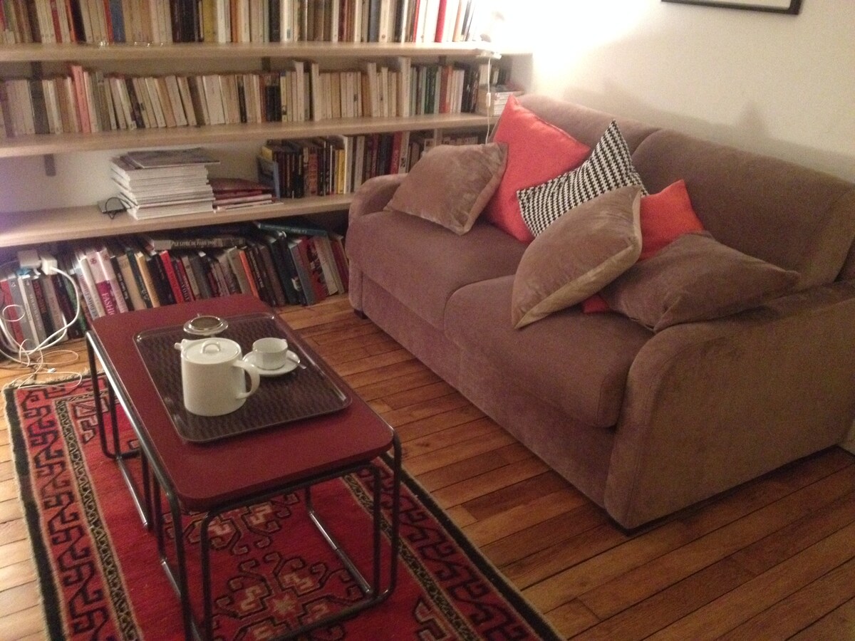 U blizini tržnice u Montreuilu, u blizini stanice metroa Croix de Chavaux, moj smještaj je savršen za parove, solo i poslovne putnike. Nalazi se u kondominiju prijatelja, povezan s pozorištem u izgradnji; također možete uživati u vrlo osunčanoj zajedničkoj terasi na krovu ovog pozorišta. A tu je i potpuno novi kauč!!