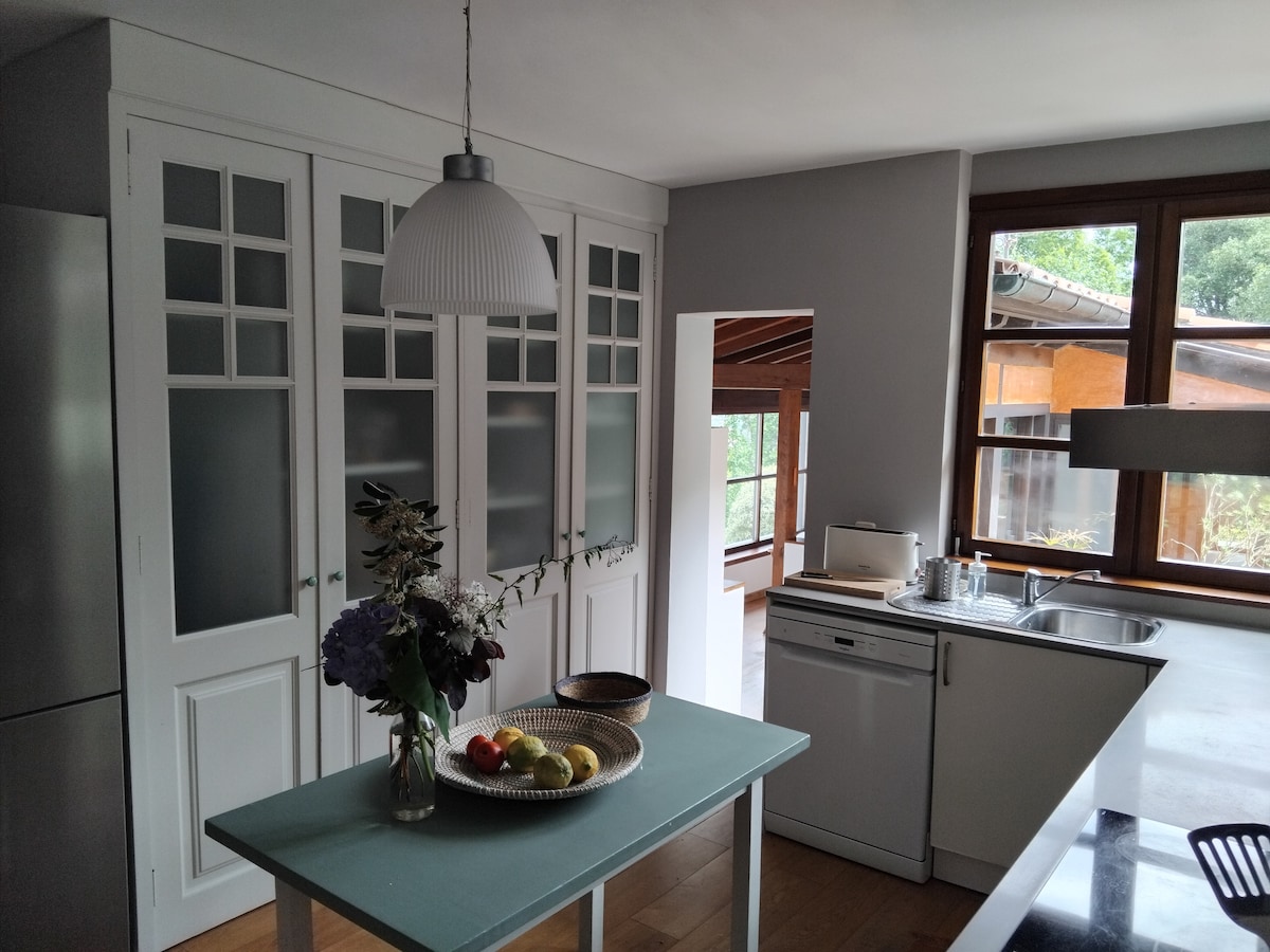 Prekrasna planinska kuća idealna za uživanje kao porodica. Ima 3 sprata s dnevnim boravkom i kuhinjom, igralište s biljarom, stolnim nogometom, stolnim tenisom i društvenim igrama, 4 pune sobe i potkrovljem opremljenim barom, trpezarijskim stolom i prostorom za učenje, bilo koje od biljaka ima potpunu uslugu. Također ima vanjski prostor za jelo i uživanje u stolu, 2 zatvorena parking mjesta, kao i veliki koral za parkiranje i prostor za odlaganje bicikala ili daski za surfanje.