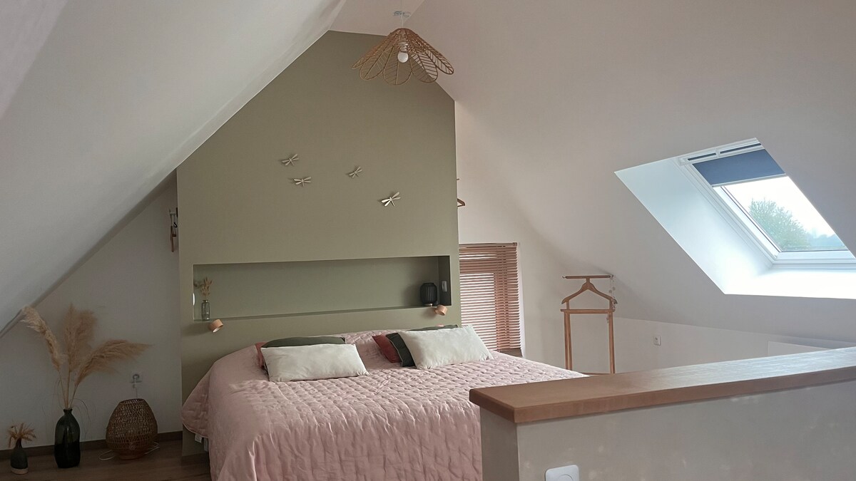 Opustite se u ovom jedinstvenom i mirnom smještaju u zelenom selu u blizini Lillea. Ova prostrana stara staja je dio seoske kuće i potpuno je renovirana u potkrovlju, moderna i čista. Nalazi se u srcu sela Houplin Ancoisne, Ancoisne, nedaleko od zelenih površina duž Deulea, uključujući Mosaic Park. Parking mjesto je dostupno u dvorištu, ispred kuće.