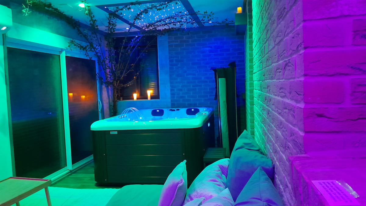 🌟 Dođite i uživajte u opuštajućem trenutku kao par, okrenut prema prekrasnom Parc de la Rhônelleu. 💧Uživajte u privatnom spa centru prestižnog brenda Jacuzzi kako biste se opustili nakon cjelodnevnog istraživanja grada. Također 🔥 se opustite u vrućoj kamenoj sauni, savršenoj za trenutak apsolutnog blagostanja. 🎥 Uronite u jedinstvenu atmosferu s video projektorom, savršenim za veče u čahuri. 🌴 S pažljivo uređenom dekoracijom za potpunu promjenu ambijenta.