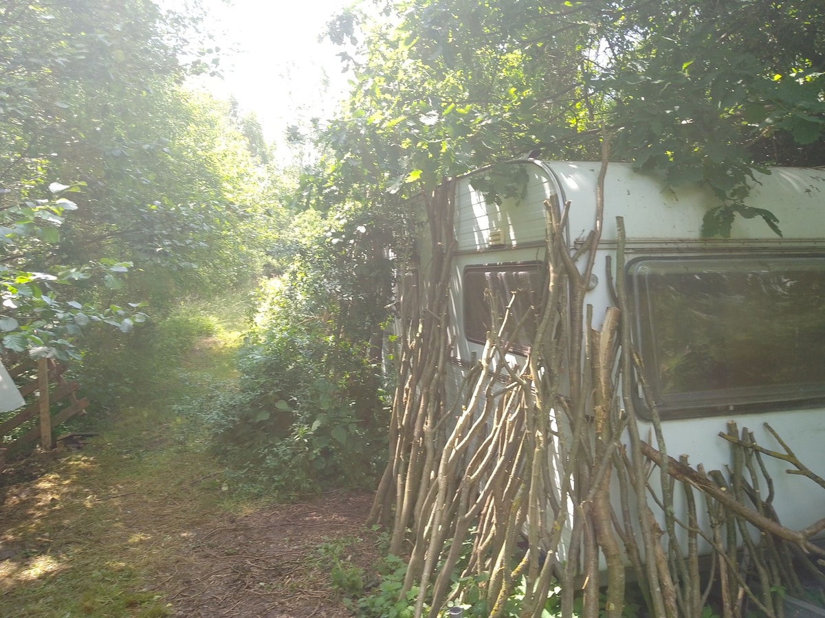 Grosser 70er Wohnwagen mitten in der Natur u Mulde