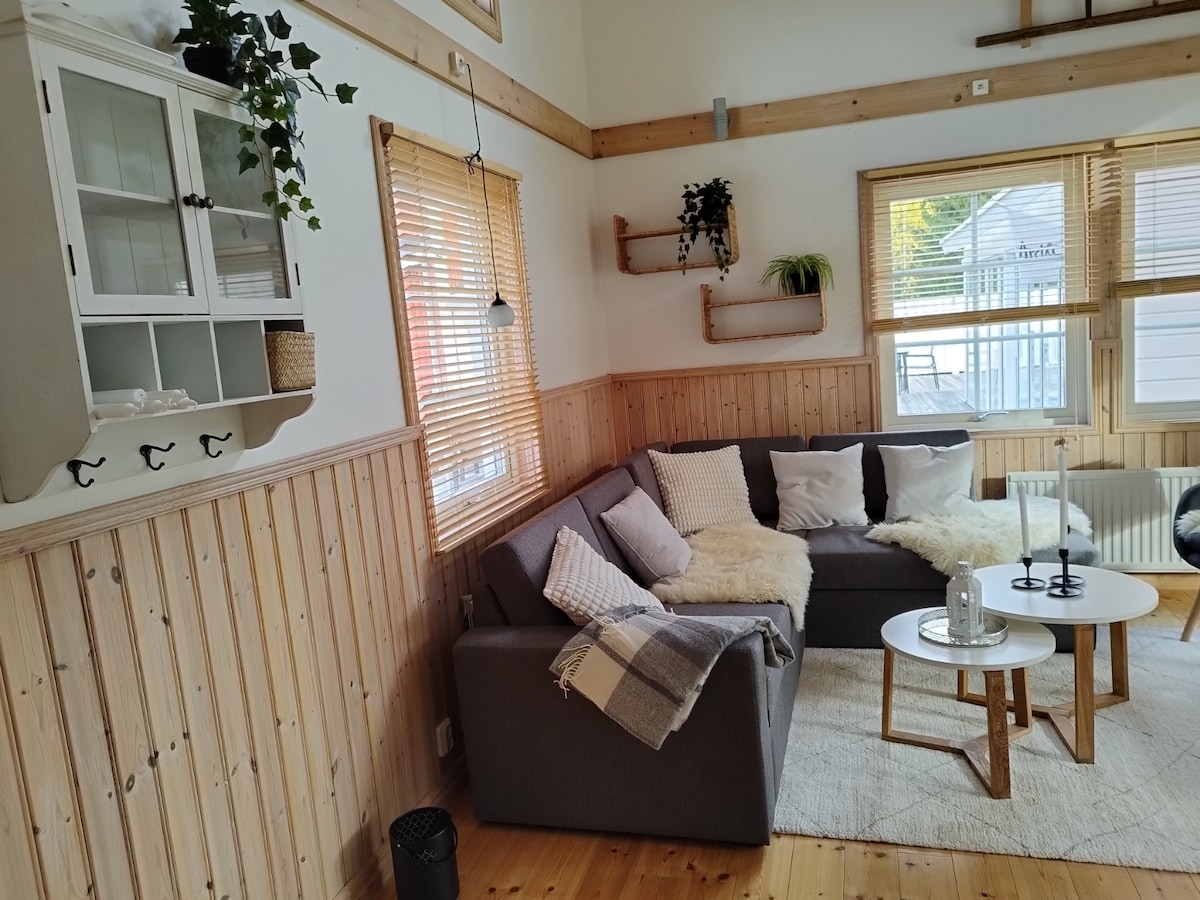 Naša udobna švedska seoska kuća na našoj farmi na osami, okružena jezerima i prirodom, san za svakoga ko žudi za mirom i avanturom. Kuća nudi 2 dvokrevetne i 2 jednokrevetne niše, kuhinju, trpezariju i dnevni boravak, kao i mali toalet s modernim odvojenim toaletom. Kuća ima struju, tekuću vodu ljeti i mogućnost korištenja saune. Grije se s 2 peći na drva. Gostinjsko kupatilo s tušem je udaljeno nekoliko koraka.
