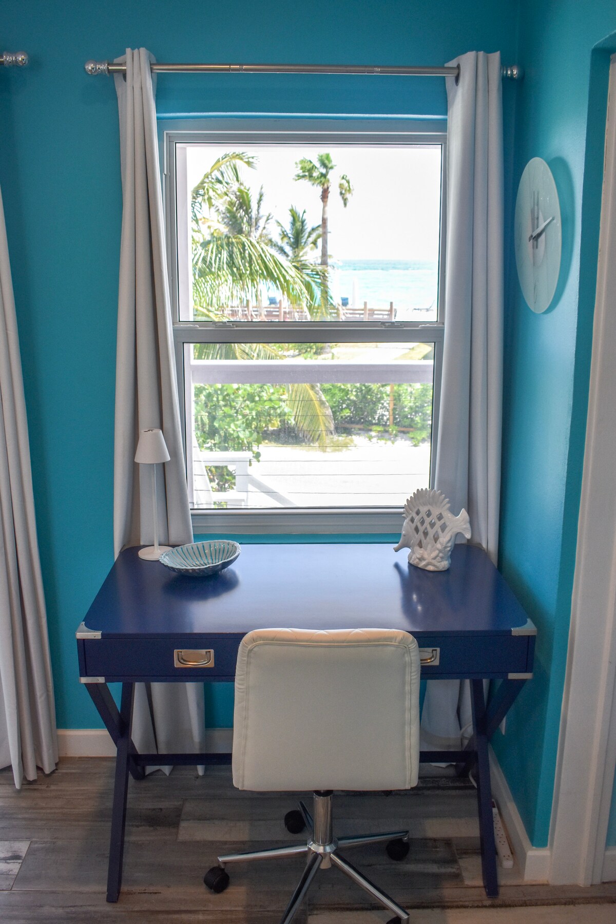 Ovaj šarmantni krajnji smještaj s jednom spavaćom sobom i jednim kupatilom nudi sve što vam je potrebno za opuštajući i nezaboravan boravak. Uronite u kristalno čiste vode uz neke od najboljih ronilačkih iskustava na Green Turtle Cayu ili se lagano prošetajte duž netaknute plaže duge milju, gdje vas čekaju skrivena blaga iz dubokog plavetnila. Potpuno opremljena kuhinja, mašina za pranje i sušenje veša i pouzdan Starlink internet. Za dodatni mir, rezervni generator