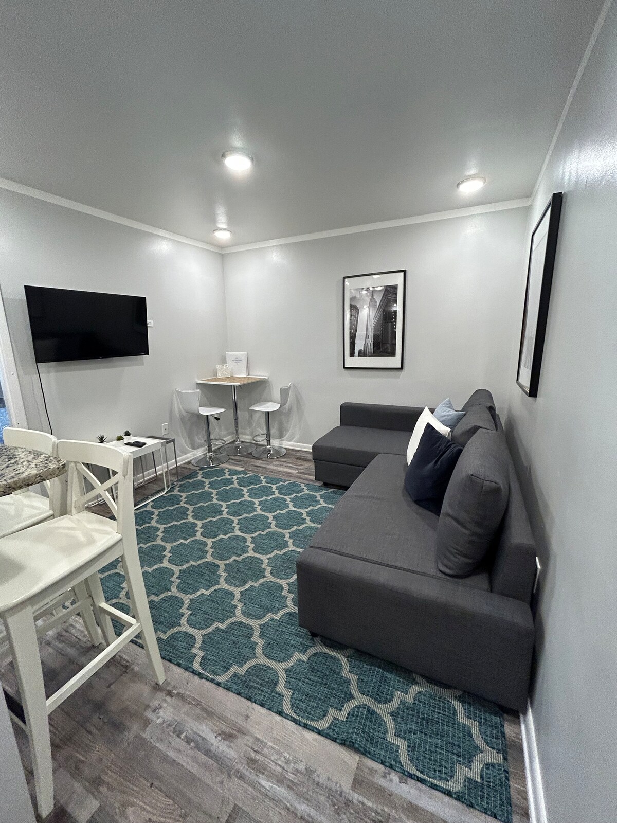 Ovo je prekrasan, potpuno renoviran jednosobni stan u mirnoj ulici udaljenoj samo nekoliko minuta od New Yorka. Stan je prostran, sa otvorenom konceptom dnevne sobe/kuhinje. Dnevna soba ima velike prozore s dovoljno prirodnog svjetla, kablovsku TV i kauč na razvlačenje. Kuhinja ima novi šporet, mikrovalnu pećnicu i toster. Potpuno je opremljen tanjirima, priborom za jelo, šoljama i mnoštvom dodataka. Spavaća soba ima potpuno novi, udoban bračni krevet s ugrađenim ormarom, TV-om i radiom sa satom. Wi-Fi je uključen!