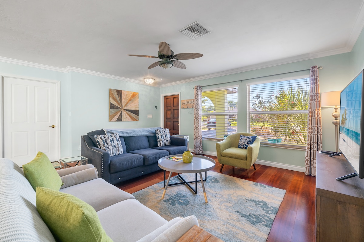 Seoska kućica na pješčanoj obali – vaše savršeno utočište na plaži! ☀️🏡 Uživajte u „boravku” u Sandbank Cottageu, samo 1 milju od plaže Vanderbilt i na pješačkoj udaljenosti od trgovačkih centara, muzeja umjetnosti, parkova i još mnogo toga! Ova seoska kućica na plaži prikladna za porodice ima privatni grijani bazen od 86 stepeni, trijem s mrežom Lanai i stambeni prostor otvorenog koncepta. Master en suite se može pohvaliti bračnim krevetom, a za vaše avanture obezbjeđujemo bicikle i opremu za plažu! 🌊🚲 NOVI i POBOLJŠANI WI-FI (august 2020.)! 🚀Nema smještaja za kućne ljubimce