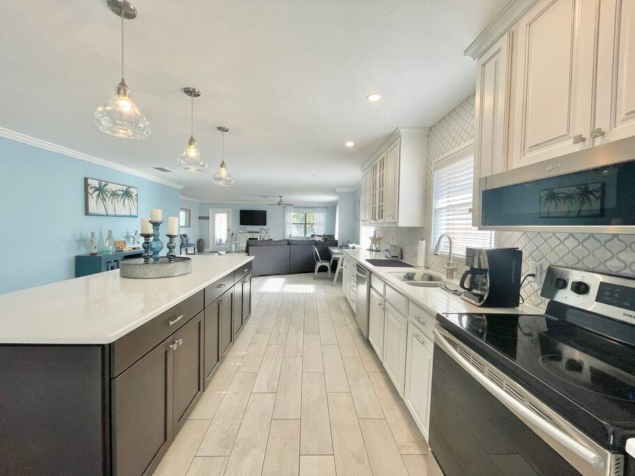 2023 Complete Remodel West of 41 .Private Heated Saltwater Pool w/ 6’ Privacy Fenced backyard. 1 miles to Vanderbilt beach Cottage with screened Lanai, 50 inch HD TV, gas blackstone grill with/ceiling fans and wet bar with frižider for outdoor living. Odlična kuća za male porodice ili parove. Obje sobe imaju bračne krevete, tako da su idealne za 2 para. Kauč na razvlačenje je dodan za spavanje 6. Radne površine od kvarcita s mramornim podovima od sedre. Stolice za plažu, frižideri, peškiri i igračke od pijeska